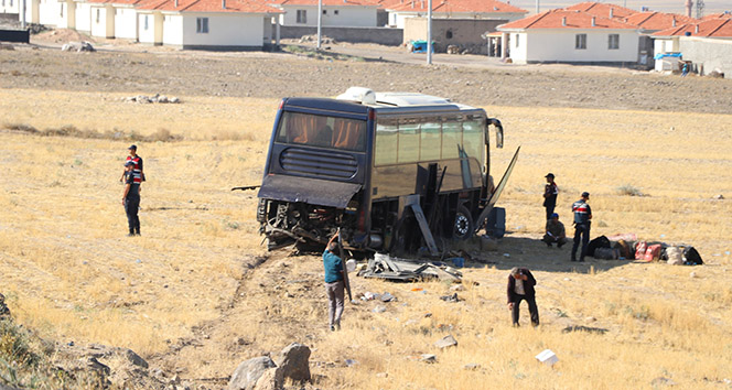 Aksaray’da göçmenleri taşıyan otobüsün yoldan çıkarak tarlaya girmesi sonucu 2’si görevli asker, 3’ü yabancı uyruklu göçmen olmak üzere 5 kişi yaralandı.