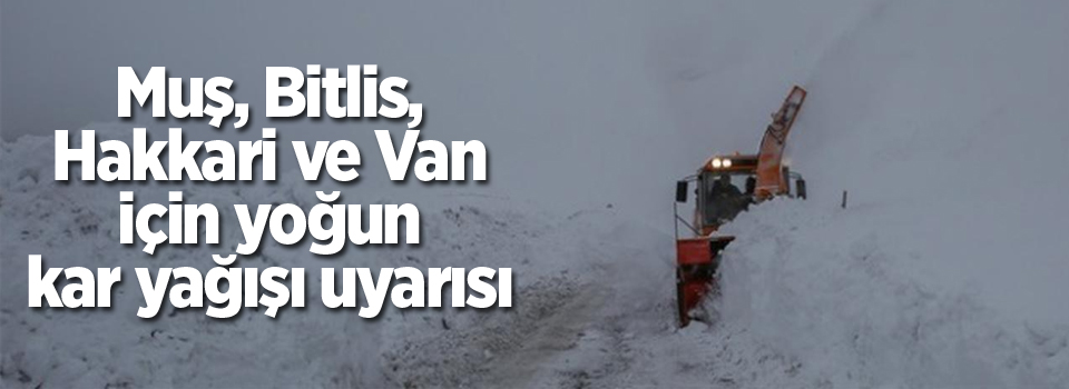 Meteoroloji 14. Bölge Müdürlüğü; Muş, Bitlis, Hakkari ve Van çevreleri için yoğun kar yağışı uyarısında bulundu.